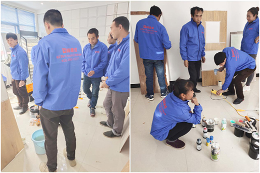 为了支持专卖店能快速切入、占领当地高端市场,林德漆总部先后派出精英团队进行帮扶。公司总部不仅提供店面设计方案,还为当地长期合作的油木工师傅提供专业的现场培训、一对一帮扶等,与店面团队携手助力品牌终端营销。