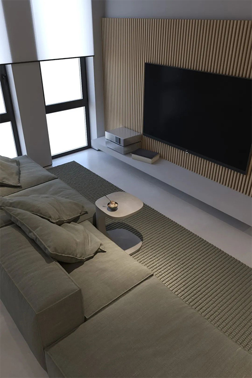 客厅空间不大,没有过多的装饰,电视面做木栅栏,加空间的适度留白,造就了极简中的质感。
