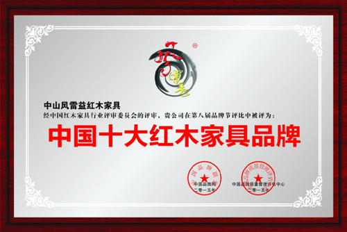 凭借其雄厚的综合实力、真诚的服务,风雷益早已获得业内人士和广大消费者的认可,而此次获得“中国十大红木家具品牌”的殊荣,更加证明了市场对风雷益的认可。风雷益用自己的品牌实力展现给世人看,我们是用实力说话,并不是“空口套白狼”的。