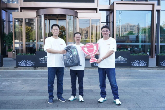 共同为“爱格跑·万象行”第一名颁发纪念奖品