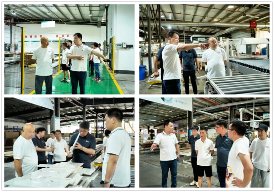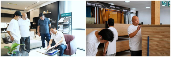 随后,一行人前往旺德府工业园,参观品牌自有工厂。在生产车间,大家通过观木纹辨真伪、触板材测质感、闻胶体验环保的沉浸式交互,深度触摸品质内核。