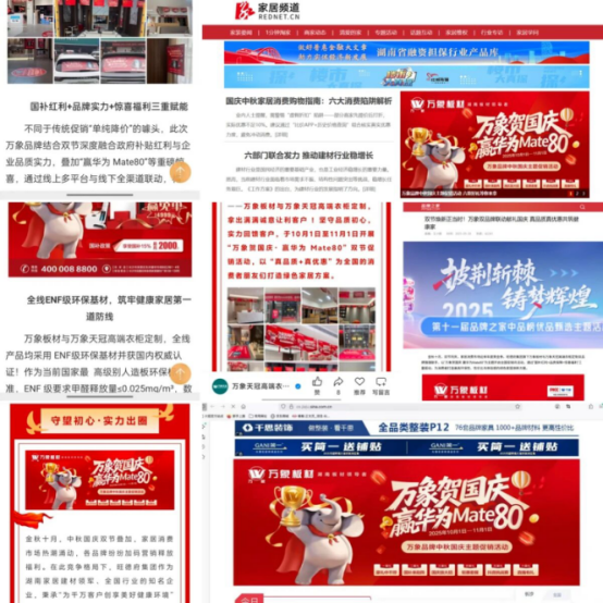 万象品牌中秋国庆主题促销活动实现全域覆盖式传播。通过整合多元网络渠道,联动红网、新浪188金宝慱官网app、行业权威媒体及公众号等平台,精准触达高价值客群,真正达成“传播无死角,触达有精度”的目标。