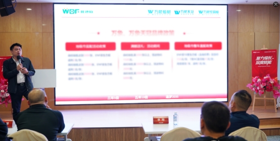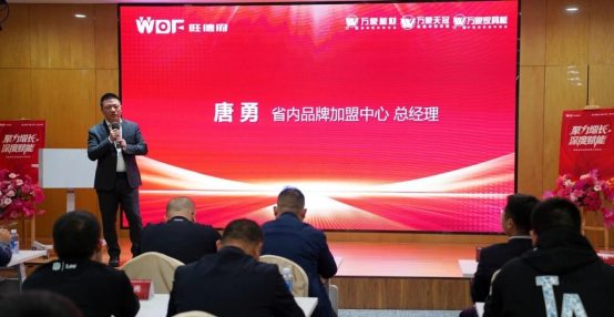 省内品牌加盟中心副总经理汤科先生登台,开展产品推荐与政策宣讲。他重点聚焦万象、万象天冠两大品牌,既详细解读品牌专属活动的政策细节,明确合作权益与支持力度,又深入拆解针对加盟商的定制化专属政策,为伙伴精准匹配合作方案,助力高效对接业务。