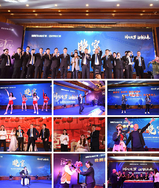 晚宴上,同乐门窗有限公司高层举杯祝酒,答谢全国经销商家人们一如既往的支持与厚爱。随后,炫酷舞蹈、温情对唱、爆笑小品、经销商现场歌唱表演以及惊喜生日会等环节,让大家激情高涨,举杯共饮,为峰会圆满落下帷幕。