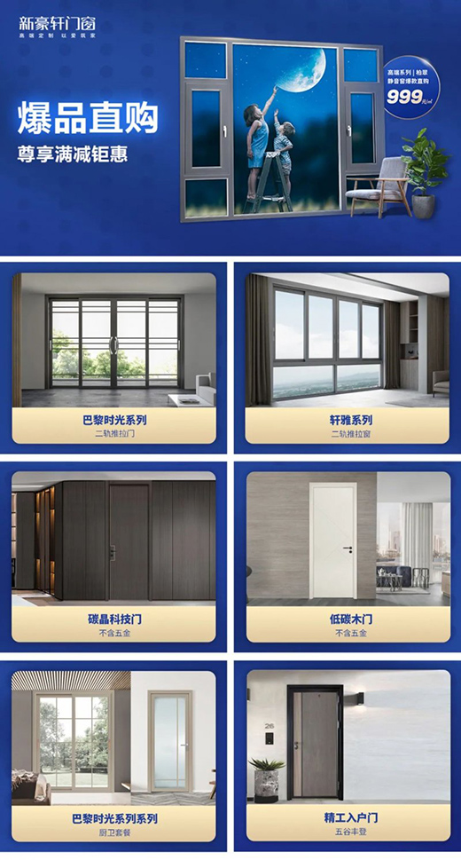 狂欢盛典,新豪轩推出巴黎时光系列二轨推拉门、碳晶科技门、低碳木门、精工入户门等多款爆品,让您享受全国畅销产品工厂直供价!