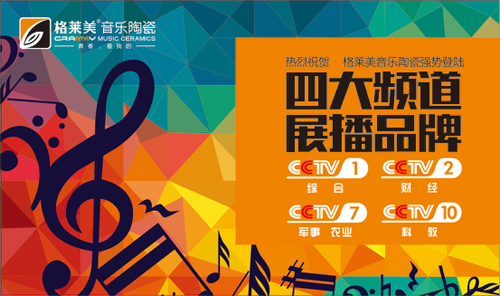 据悉,2011年佛山第一季度陶瓷企业注册新品牌商标数量同比下降63%,新品牌减少80个。面对残酷的行业竞争,佛山格莱美音乐陶瓷作为中国知名陶瓷品牌,全球首个提出“音乐陶瓷”概念的品牌,格莱美深刻认识到市场竞争的激烈,停滞不前就是退步,因此,为保持品牌的“鲜活度”,2017格莱美强势加入中央电视台,成为央视展播品牌,实现品牌跨越式发展。届时,格莱美音乐陶瓷品牌宣传片将在央视CCTV-1、CCTV-2、CCTV-7、CCTV-10四大黄金品牌震撼播出。