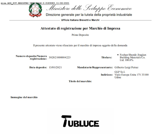 Tubluce涂布斯意大利商标注册证