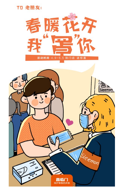 疫情终将会过去,喜临门诚邀广大消费者到线下门店体验,感受喜临门床垫等诸多产品的高科技魅力。日前,喜临门推出了暖心行动——“春暖花开我“罩”你”,4月9日至5月5日,幸运老客户前往喜临门线下门店,即可免费领取【神秘焕新礼包】,享多重壕礼,喜临门欢迎您的大驾光临!