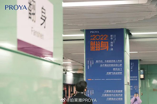 2保持品牌价值的开放性解读,珀莱雅在地铁「翻身」站举办新年艺术诗歌展