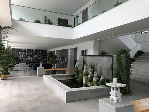 踏入公司一层的大门,瞬间就会被眼前的景象所吸引,仿佛走进的不是一个现代化的设计公司,而是踏进了一个古老的苏州园林,到处都充满了细水长流的柔情和浪漫的情愫。几个高低大小各异的石狮子正对着门口,仿佛是与门外的小伙伴们遥遥相望,在绿色植被和水流的衬托下,显得更加活灵活现。