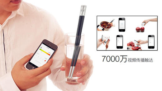 设计的数据思维“设计有数”。2014年,因为百度的愚人节视频,引来了百度和洛可可-洛客的合作,基于百度的大数据,洛克打造了一款能够检测饮食的“百度筷搜”。它可以检测地沟油、测量水果甜度、水的酸碱度。用场景举例,中午去吃饭,点一盆酸菜鱼,把筷子往锅里一插,发现有地沟油,上传网络,大家便都知道这家餐厅用的是地沟油;远在其他城市的母亲每天都想知道孩子吃了什么,营养够不够,筷子检测,将数据传输给母亲,便能令她放心。